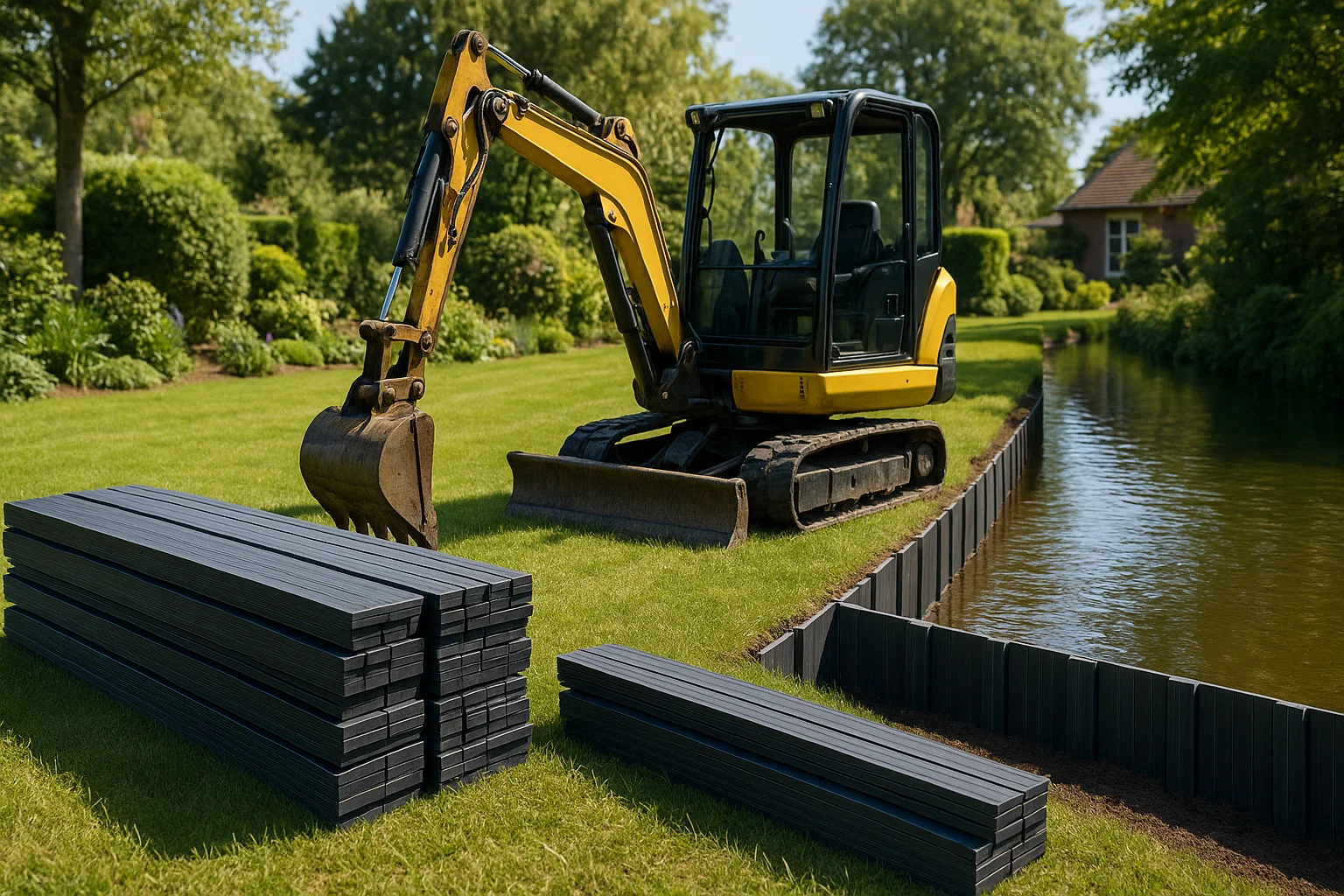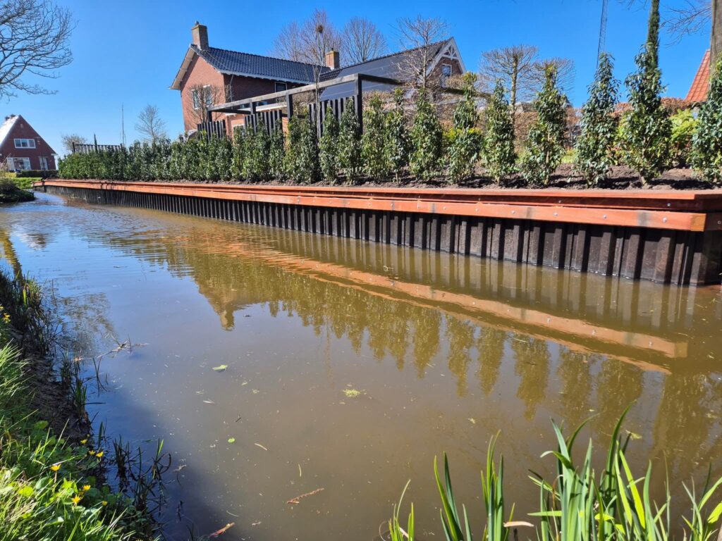 Een nette en duurzame afwerking van de waterkant: dat was het doel van dit project. Door het plaatsen van een stevige walbeschoeiing oogt de tuin weer strak en is het terrein goed beschermd tegen afkalving.